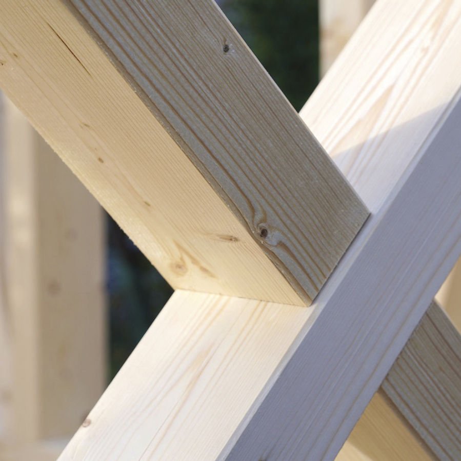 Robustní zahradní domek je vyroben z masovních smrkových KVH hranolů, které jsou ponechány přírodní. Případná povrchová úprava je na Vás (více k tématu v častých otázkách).